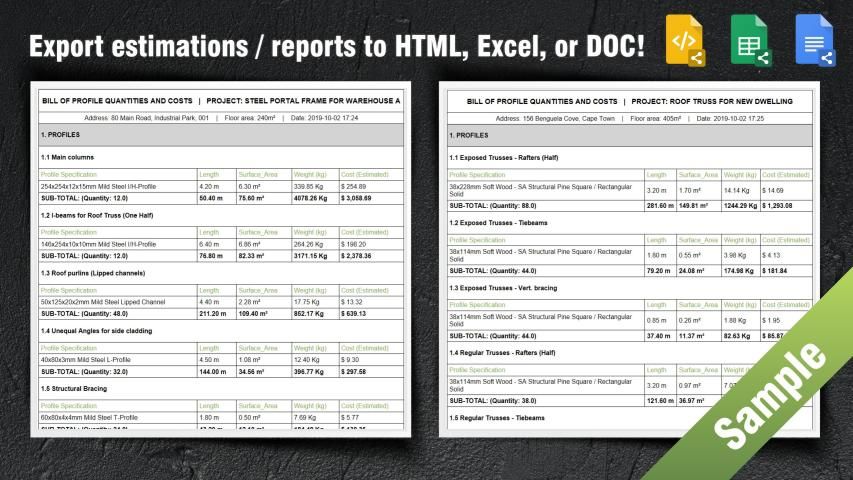 designed for use by engineers, contractors, structure designers, quantity surveyors. The app allows you to quickly create estimations, calculations & reports for steel or wood frame structures. It can also be used to calculate the materials for roof trusses, portal frames, columns, beams, gates, fences, carports, balustrades and lots more!