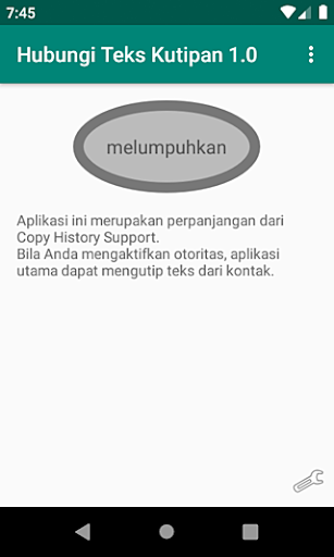Aplikasi ini merupakan perpanjangan dari "Copy History Support". Bila Anda mengaktifkan akses ke kontak, aplikasi utama dapat mengutip teks dari kontak. aplikasi utama https://play.google.com/store/apps/details?id=jettoast.copyhistory