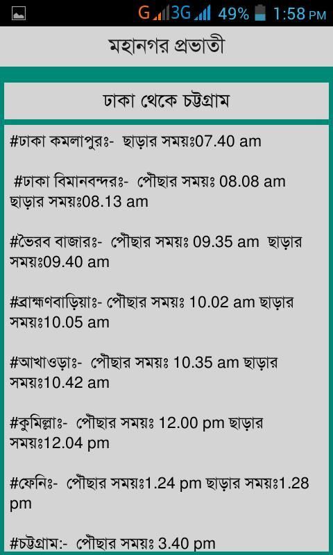 - আন্তঃনগর ট্রেনের সময়সূচী