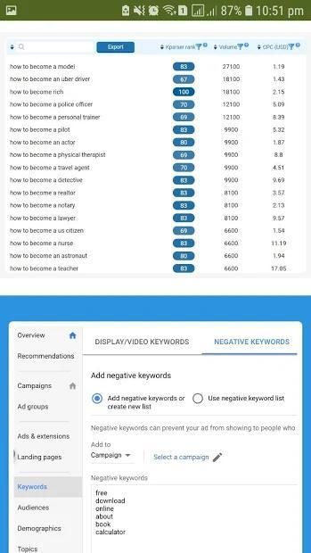 - Expand your keyword lists in ads with a huge list of long tail suggestions with a very low competition level from Kparser. As a result, you’ll reduce general CPC and get more traffic for less price.