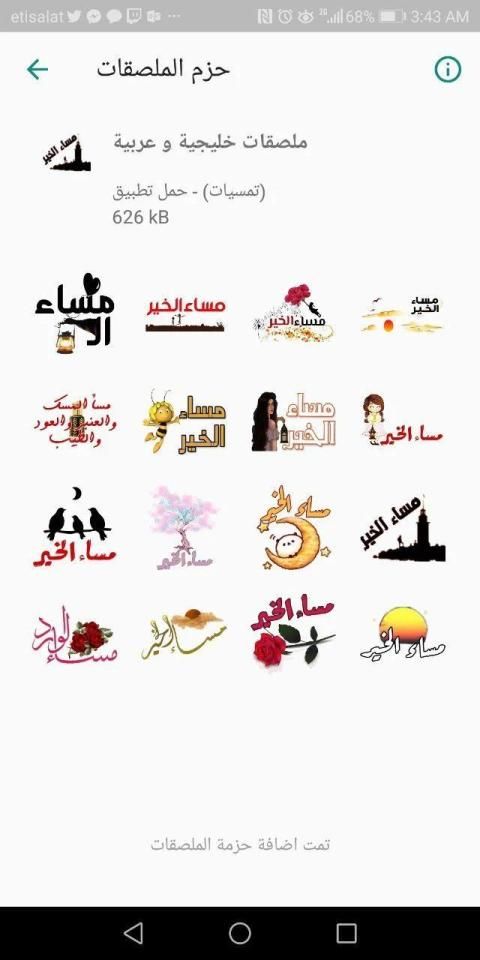 Jika Anda menyukai poster-poster berbahasa Arab dan Teluk - WAStickerApps, kirimkan ke teman-teman Anda sehingga mereka dapat mengirimi Anda poster-poster indah!