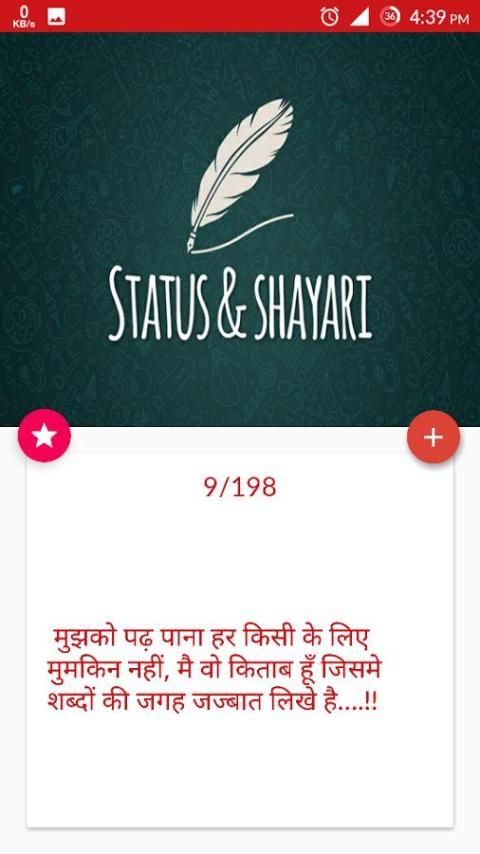 Status sikap: aplikasi Share Status adalah status aplikasi besar memiliki berbagai Status dalam bahasa Inggris dan Hindi Bahasa.