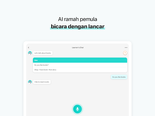 AI Talk ditawarkan sebagai layanan berlangganan premium yang memungkinkan pengguna untuk terlibat dalam percakapan bahasa Inggris alami dengan teman AI, Musio. Baik itu mode berbasis saran Obrolan Belajar atau mode percakapan tanpa batas Free Talk, siswa dapat mengobrol dalam banyak topik dan pengaturan permainan peran yang dapat mereka bayangkan.