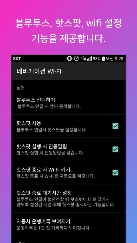 자동으로 핫스팟을 켜줘서 네비게이션을 편리하게 이용할 수 있는 앱입니다.