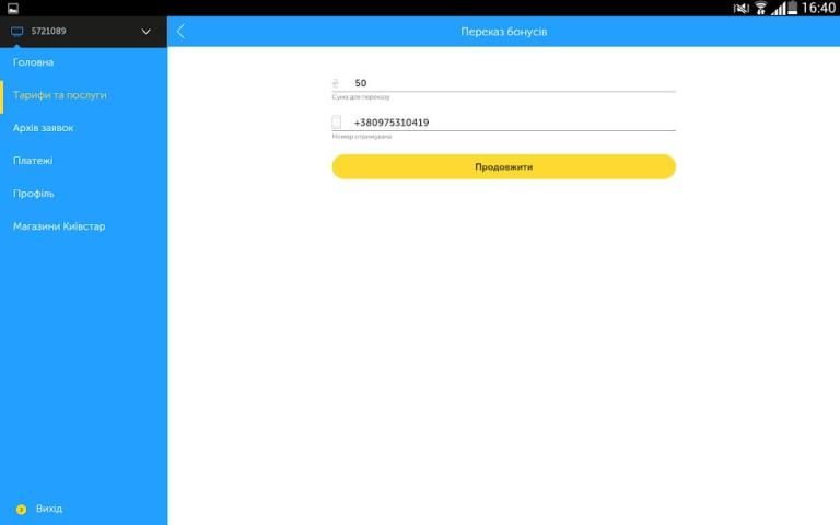 • secara bersamaan mengelola profil nomor ponsel jaringan Kyivstar dan layanan "Internet Rumah";