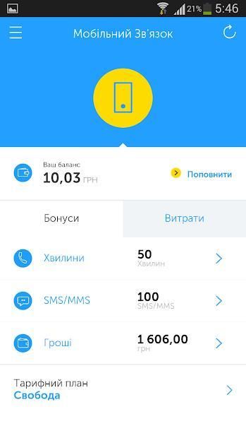 • отримувати докладно інформацію про ваш рахунок і бонусні баланси;