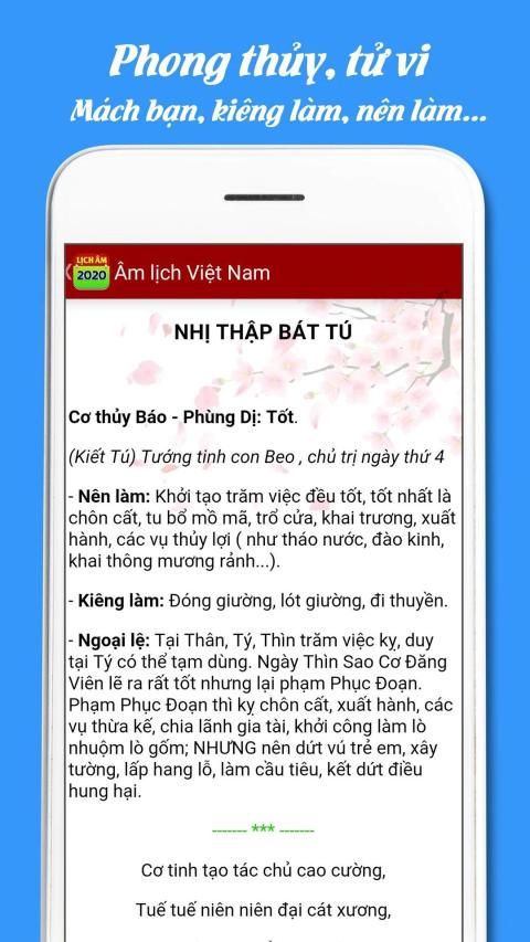 Lịch âm 2020 là ứng dụng lịch vạn niên nhẹ và dễ sử dụng