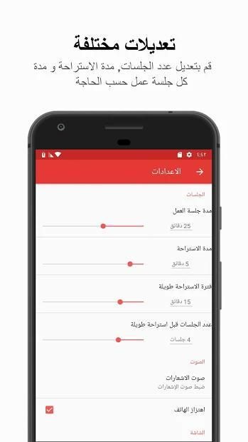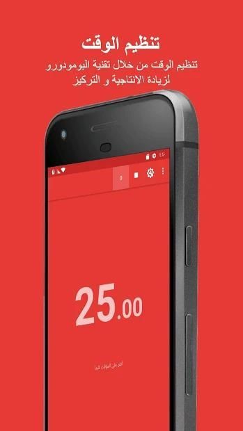 مميزات تطبيق منبه البومودورو تكنيك - (Pomodoro Timer):