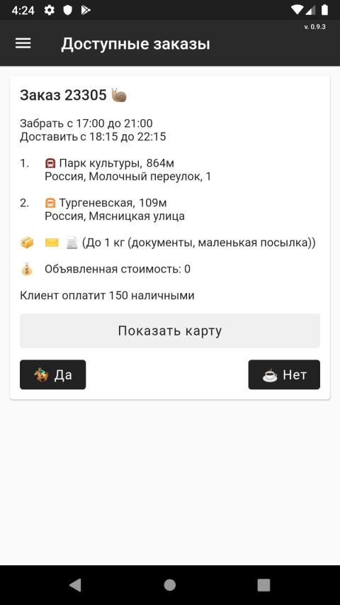 1️⃣ Выберите из заказов удобный для вас по маршруту, временным интервалам и типу посылки