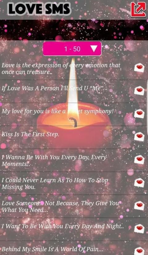 ♥ Jika Anda ingin menunjukkan cinta Anda dengan yang paling bermakna messages.we berharap bahwa Cinta Pesan - Cinta Romantis adalah alat yang baik untuk mengungkapkan cinta Anda dan kebahagiaan selalu di sekitar Anda.