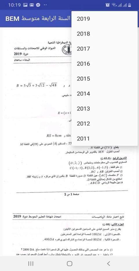 اختبارات شهادة التعليم المتوسط bem 2011 , bem 2012, ,bem 2013 , bem 2014 , bem 2015 , bem 2016 , bem 2017 , bem 2018 , bem 2019