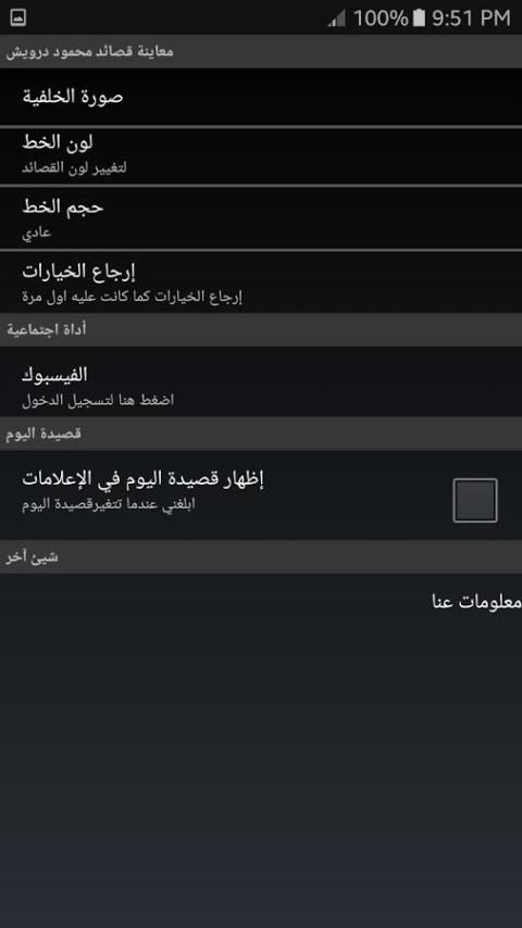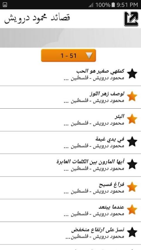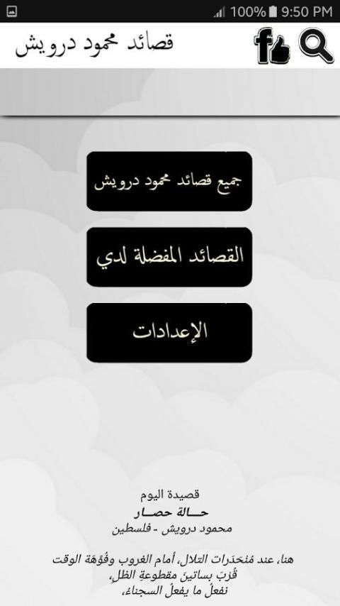 Ribuan aplikasi TOP Android terbaik, adanya di 9Apps. 20,000+ Pengguna mendownload جميع قصائد محمود درويش versi terbaru di 9Apps secara gratis! Jika kamu tidak nyaman dengan versi yang lama maka kamu bisa update sekarang. Aplikasi HOT ini di rilis tanggal 2017-03-21. Hanya butuh ukuran kecil dari HP Anda untuk menjalankannya.