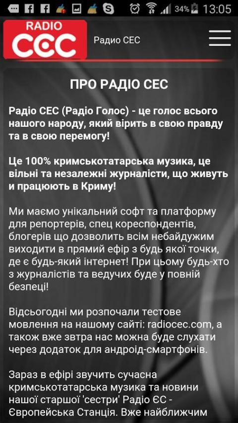 Untuk sogodnі Sama, Tsey pam'yatny hari, bukan hanya E vіdkrivaєmo dasar іnternet-radіo, mi prezentuєmo proyek unіkalny nezalezhnoї gromadskoї zhurnalіstiki, yang domіvku untuk vsіh VІLNIH Krymska Tatar!