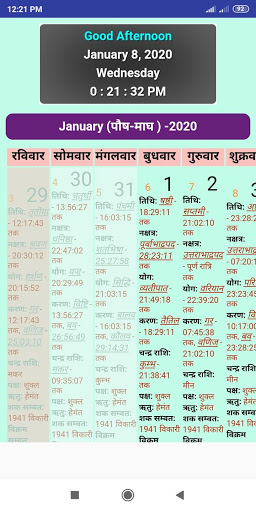 वर्ष 2020 का पंचांग | 2020 - Panchang is fully offline Application