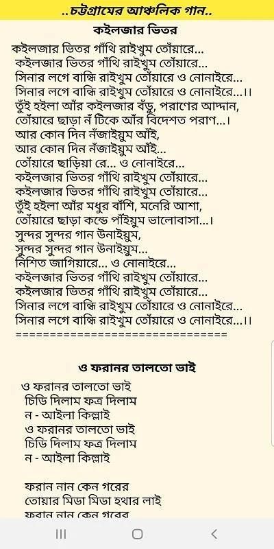 Aplikasi ini memiliki beberapa lagu lokal Chittagong.