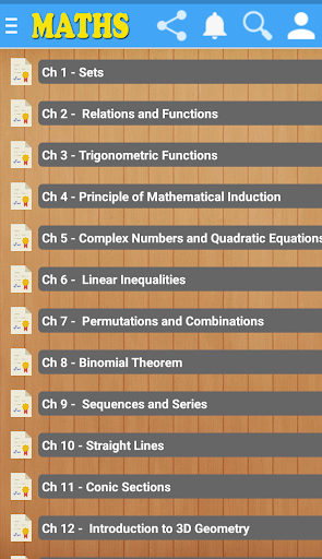 The Class 11 Mathematics NCERT solutions help students understand concepts in a structured, easy-to-digest manner and develop better theoretical and analytical skills which are needed in various exams. Answers are provided in a step-by-step manner related to various chapters of Mathematics class 11th. This app has a very simple user interface. Whenever you require any information about Mathematics you are just a click away .