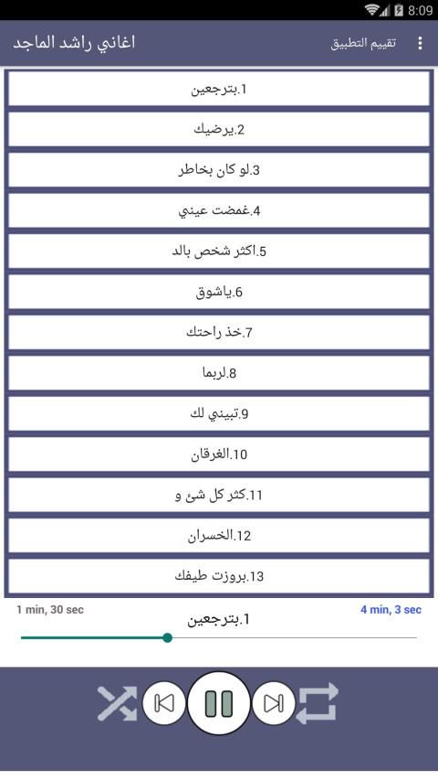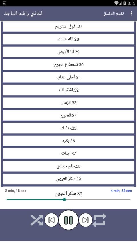 يحتوي التطبيق على الاغاني التالية: