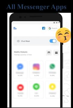 Aplikasi Messenger ini juga menunjukkan kepada Anda statistik penggunaan aplikasi messenger dan media sosial utama Anda seperti Facebook Messenger, Tango, Pinterest, WeChat, Kik, IMO, Xfinity, Telegram, Whatsapp, Sarahah, messenger fb.