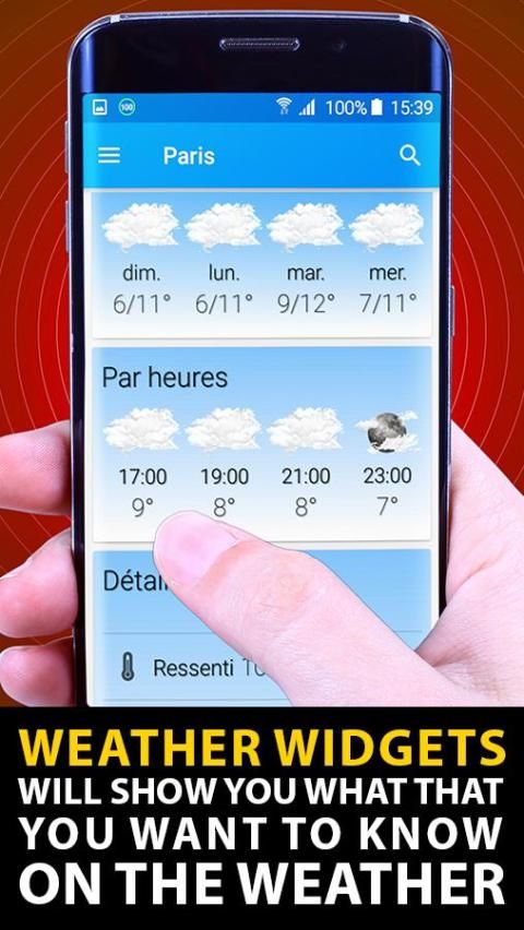 Cuaca smart card mendeteksi kota Anda saat ini dengan presisi. Anda tidak hanya mengetahui cuaca lokal, tetapi juga mencari informasi cuaca dan ramalan cuaca.