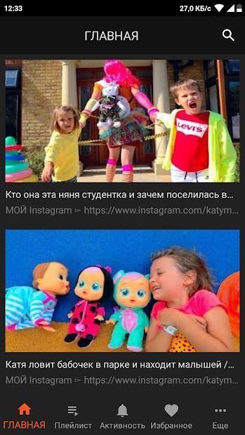 Все ссылки на видео получены с использованием официального API Youtube. В качестве источников использованы Youtube канал - "Мисс Кэти", предоставивший видео в открытый доступ. Проигрывание видео происходит в плеере Youtube.