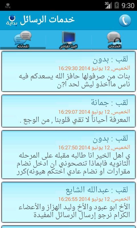 برنامج مراسلات قناة بداية الفضائيه بالاضافه الى الرسائل المعروضه على القناه و البث المباشر للقناه