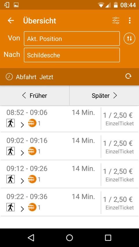 Informasi jadwal: Temukan rute tercepat dengan bus dan kereta api dari lokasi Anda atau alamat awal ke tujuan - dari pintu ke pintu. Simpan senyawa pilihan untuk bus dan kereta api sebagai favorit, panggilan informasi tarif untuk angkutan umum Bielefeld atau membeli tiket sesuai sama. Berbagi. Koneksi Anda melalui SMS, email, WhatsApp atau Kalender