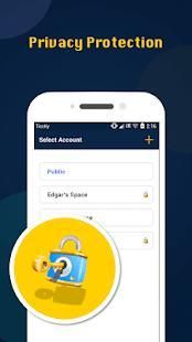 Juga multi Chat dirancang khusus untuk pengguna yang banyak orang menggunakan satu perangkat. Dengan multi obrolan setiap pengguna dapat menciptakan ruang rahasia Anda sendiri, dan setiap orang bisa login WhatsApp Anda sendiri atau Facebook tanpa perlu khawatir mencongkel mata oleh kunci keamanan!