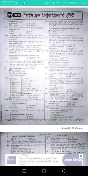 বি.সি.এস. লিখিত পরীক্ষা (মানসিক দক্ষতা ৩৭ তম)