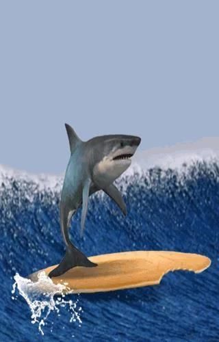 Shark Surfer Wall Clock has a great continuous surf loop and great music. Makes a super great screen saver. Shark Surfer Jam Dinding memiliki loop ombak terus menerus besar dan musik besar. Membuat screen saver super besar.