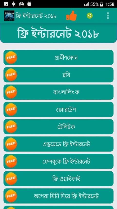 Enam Mayor Mobile Operator di Bangladesh adalah Paket included.Internet untuk Bangladesh Pengguna Mobile. Dalam ফ্রি ini ইন্টারনেট ২018 Gratis Bersih BD App;