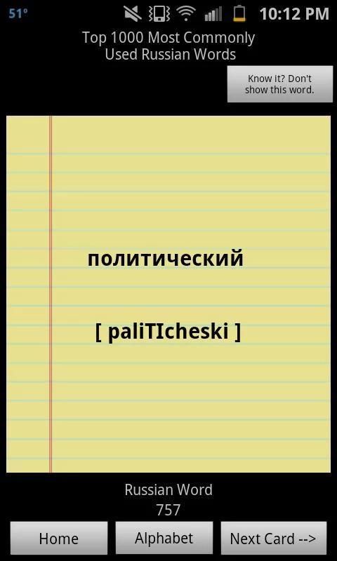 As promised this latest version enables the ability to add new Russian words to study anytime. Upgrading to this version will reset your "known words" list.