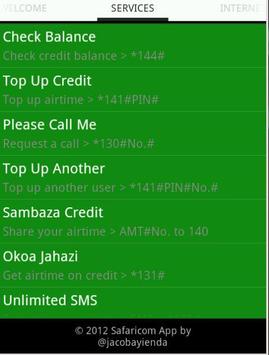 - Tighter integration with Safaricom's web services with a new welcome screen that shows all your account details at a go.