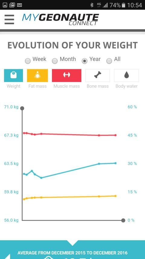 - Monitor the long-term development of body parameters: Save measurements and view the long-term development of body parameters, weekly, monthly and annually. Understand your body at a glance with the body composition pie chart.