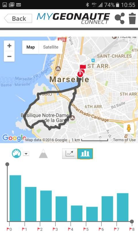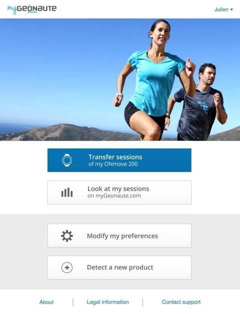 The myGeonaute menghubungkan aplikasi memungkinkan Anda untuk pasangan dengan dan melihat GPS ONmove 200, ONmove 220 dan ONmove 500 jam data yang di samping Skala terhubung 700 sisik.