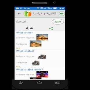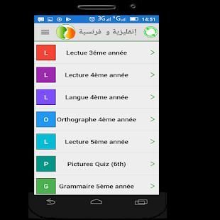 تعلم اللغة الإنقليزية و اللغة الفرنسية بأسلوب مبسط و متدرج ضمن مستويات تعلم و في شكل تمارين متدرجة الصعوبة. التطبيق عبارة عن 45 سلسلة من الاختبارات ذاتية الاصلاح . التطبيق يحثك على تجاوز أخطائك و يحثك على التعلم السريع. تمارين و اختبارات تتضمن صورا توضيحية تساعدك على تثبيت المعلومة لديك. تطبيق يجعلك تتعلم اللغة الإنقليزية و اللغة الفرنسية بشكل مبسط. تعلم بمفردك و تجاوز صعوباتك. ستلاحظ تقدمك و انت تتعلم مع التطبيق في متعة و استفادة.