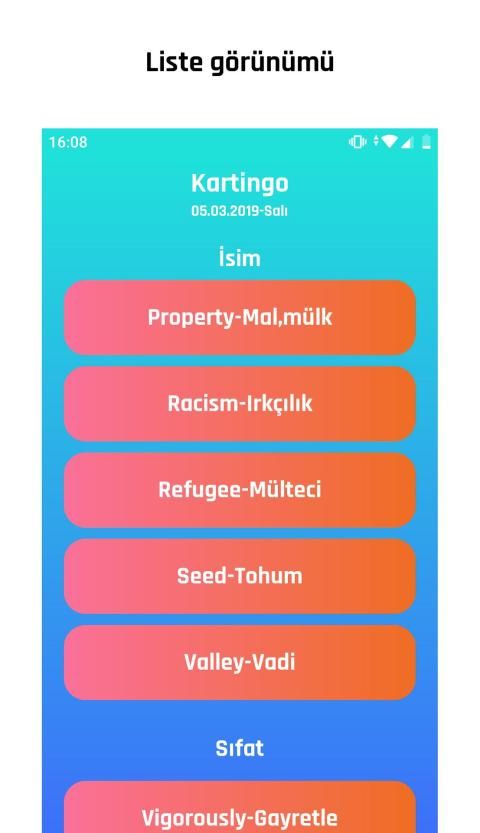 Kelimeleri liste şeklinde görüntüleyebilirsin.