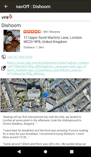 2.Temukan tujuan menggunakan peta atau Yelp Inbuilt, Google Places atau Alamat Search.