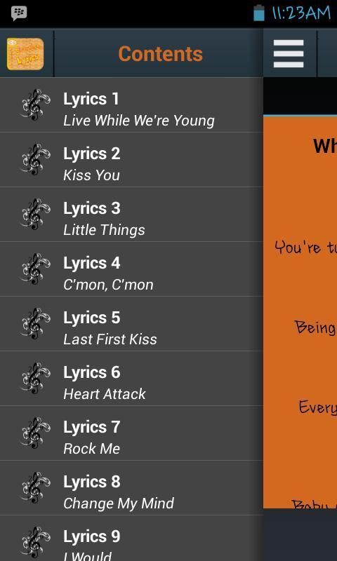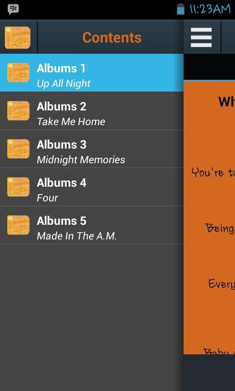 Aplikasi ini adalah kumpulan lirik lagu dari semua album One Direction.