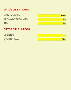 Requiere de 3 datos, la tasa de Conversion que la puede obtener de la gerencia de ventas o de un embudo de conversion de google analytics, el precio del producto la obtiene de la gerencia y la meta de ingreso, que la puede obtener de una cifra de la gerencia o de una ANS. El calculo le genera metas por fases lo cual le da una guia util para desarrollar su estrategia de marketing y ventas asi como estimar el presupuesto.