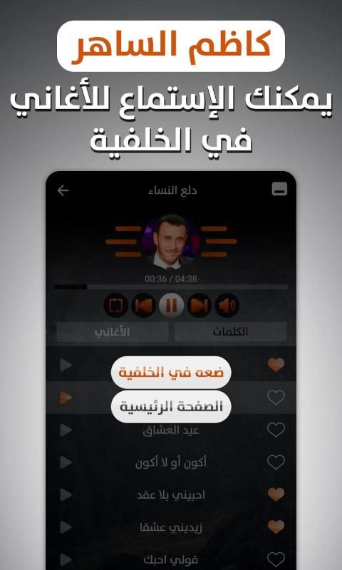 • يمكنك إستماع الأغاني في الخلفية وإستعمال تطبيقاتك الأخرى