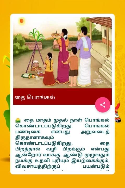 You can share this happy pongal information with loved ones, special friends and family via social apps like Whatsapp, Instagram, Facebook, hike and others.