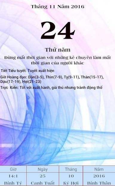 (sau khi xem trực của ngày nhấn INFO để xem ý nghĩa của trực, cách tốt và xấu của can chi, cách tốt và xấu của ngũ hành nạp âm)