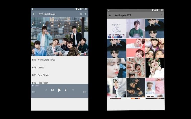 Aplikasi ini menyediakan lagu-lagu terbaru dan wallpaper BTS terbaru pada saat yang sama