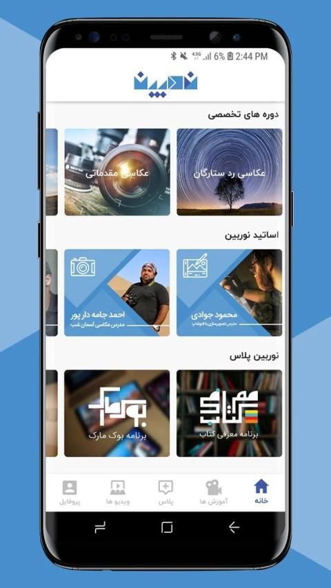 اپلیکیشن نوربین حاوی دوره های آموزشی در قالب ویدئو و فایل های تصویری همراه با زیرنویس فارسی می باشد.