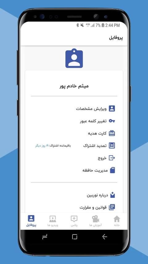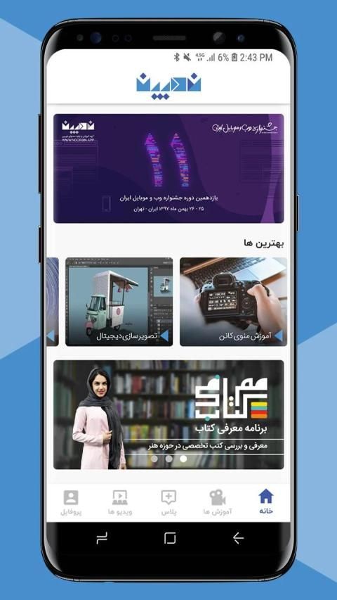 Aplikasi Norbin berisi kursus pendidikan dalam bentuk file video dan gambar dengan subtitle Persia.