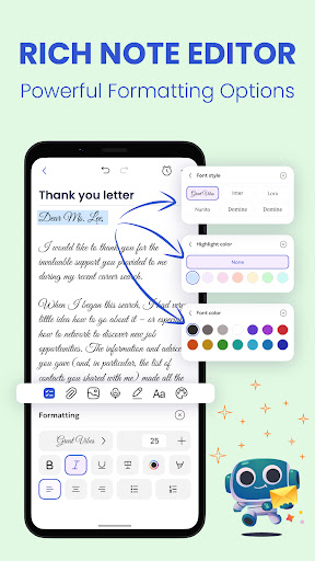 Gunakan berbagai warna dan tema keren untuk mengambil notepad.AI Note memungkinkan Anda menyesuaikan buku catatan Anda dengan tema catatan ini.Pilih favorit Anda dalam aplikasi catatan catatan gratis ini untuk menjaga catatan Anda tetap teratur!