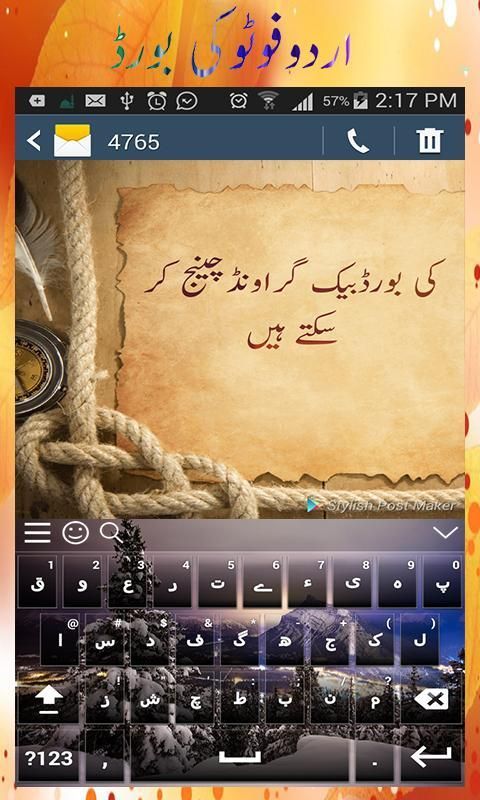 Keyboard Tema: Ini Keyboard urdu foto memiliki tema yang indah, Anda dapat memilih yang favorit Anda, kehendaknya lebih membahagiakan Keyboard urdu Anda.
