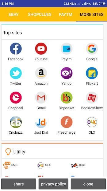 Aplikasi ini adalah kombinasi dari banyak tautan sosial dan belanja pihak ketiga