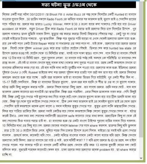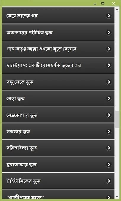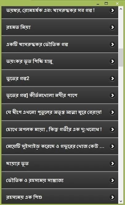 Sulit untuk menemukan orang-orang yang tidak suka mendengar cerita hantu. Semua orang ingin mendengar cerita, tapi takut cerita hantu. Bengali membayangkan atau mendengar cerita rumah hantu di murubbidera (banyak-nenek, nenek, dada) dari mulut. Sekolah dengan membaca dari pasar untuk membeli berbagai jenis cerita hantu membaca buku-buku cerita. Pada malam hari, cerita hantu, tapi rasa takut lebih menyenangkan untuk membaca. Jika tubuh tidak jatuh ke dalam setiap bagian dari cerita, atau berpikir bahwa hal itu tidak terjadi chamachama; Matakiye leher sekarang akan datang ke cerita hantu, hantu, maka bersenang-senang membaca dapat ditemukan di antara.