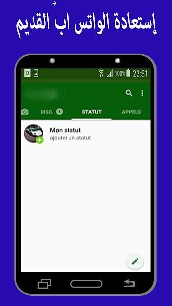 مرحبا بكم في أحسن تطبيق استرجاع الواتس اب الأصلي يتيح لك استرجاع الواتس اب الأصلي النسخة الأفضل و رسائل الواتس اب المحذوفة و استرجاع محادثات الواتس اب يجميع تسجيلاتها و مقاطعها.